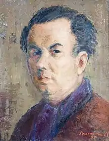 Ličenoski graduated in 1927 from an art school in Belgrade, where he had studied under Milan Milovanović (1876–1946), Ljubomir Ivanovic (1882–1945) and Petar Dobrovic (1890–1942).[1] Upon graduation, he organized his first exhibition in Skopje and specialized in wall painting at the School of Applied Arts in Paris.[2] There he attended the École nationale supérieure d'arts et métiers (1927–29) and frequented the studio of Andre Lhote. In 1929 he returned to Belgrade and became a member of the group Oblik. In the 1930s he gradually abandoned portraiture and social issues as subject-matter in favour of painting the Macedonian landscape, which he rendered with somewhat crude brushwork and thick layers of intense colour. During that decade he decorated ecclesiastical and other buildings and worked on the monument Albanian Golgotha (1940) for the Serbian soldiers' cemetery on the island of Vido (Greece). He moved to Skopje in 1945 and became a professor at the newly established School of Applied Arts. Licenoski exhibited at several one-man and group shows at home and abroad.[1]