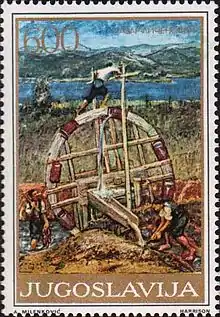 Water wheel by Ličenoski on a 1975 Yugoslav stamp