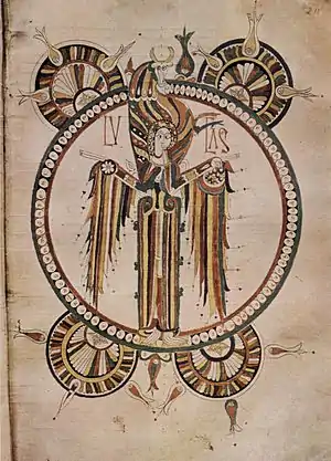 It was edited by abbot Maurus and produced by the copyist and illuminator 'Ioannes' (John) under the supervision of a monk called Vimara.[1][2]