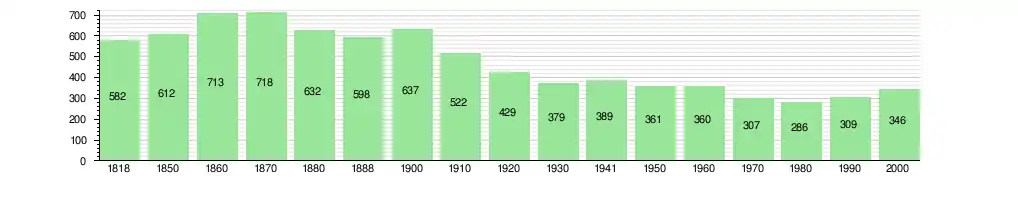 Le Bémont has a population (as of December 2020) of 324.[8] As of 2008, 2.4% of the population are resident foreign nationals.[9] Over the last 10 years (2000–2010) the population has changed at a rate of -8.2%. Migration accounted for -10.1%, while births and deaths accounted for 4.5%.[10]