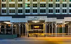 The hotel opened on March 13, 1981, as the Hotel Parker Meridien New York.[1] The hotel opened on Friday the thirteenth, a date considered lucky in France. Because the date is considered unlucky in the US, however, the actual grand opening celebration was held a week later, on Friday March 20, 1981. The hotel was developed by the New York-based Jack Parker Corporation and managed by Air France's Meridien Hotels division. In 1979, the New York City Department of City Planning gave Parker permission to construct a 40-story building, eight floors past the 32-story maximum for a building with that lot area, provided that the corporation add a public atrium. The hotel was later slightly renamed, becoming Le Parker Méridien New York. The atrium seating was removed in 1990, and subsequently restored after a "high-profile" campaign by the New York City Department of Buildings.[4] Under the Parker Corporation's management, Le Parker Meridien was one of the few luxury hotels in the city that accommodated wild animals as guests.[5] In 2012, the hotel's coffee bar was flooded with concrete following a construction accident at a neighboring building.[6]