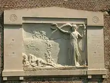 - On the ramparts, another work by Desruelles commemorates the liberation of the city (World War I) by ANZAC troops from New Zealand. This monument of the New Zealand fixed on a curtain wall between the two bastions of the Gard and Saint-Martin, is dated 1922. Like many memorials of the Great War, it was opened on Sunday 15 July 1923 in the presence of Marshal Joffre, Lord Milner and Sir James Allen (NZ). The New Zealand government decided in 1920 to include its lost youth in stone. Thus, the "jack of all trades" New Zealand architect, Samuel Hurst Seager was appointed official architect of the Great War memorials of New Zealand. His work was noticed by a traveling exhibition for "improving the aesthetic standards of memorials" had seduced the local authorities. Hurst Seager thus received the task of designing the memorials of Longueval and Le Quesnoy in France, Mesen in Belgium and Chunuk Bair in Gallipoli – the four foremost places of the New Zealand Expeditionary Force during the Great War. In addition to designing, S. Hurst Seager had to find the ideal location of the memorial. So it was he who oversaw the erection of the monument whose implementation was provided by the artist Felix Desruelles the creator of the monument to the dead of the town. The plan of the New Zealanders monument in itself was the work of a designer of the British Flying Corps from Scotland, Robert Henry Fraser, a specialist in plastering and founder of the Art War Memorial Tablet in 1918.