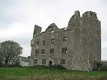 In 1639, Donough's grandson, Conor O'Brien married Máire Nic Mhathúna (MacMahon).[4] She became one of the most famous women in Irish folklore who, due to her flaming red hair, was commonly known as Máire Rua ("Red Mary"). She was born in 1615 or 1616. Her father was Sir Torlach Rua MacMahon, Lord of Clonderlaw and her mother was Lady Mary O'Brien, daughter of the third Earl of Thomond. Her first husband, Daniel O'Neylan (also sometimes written O'Neillan or Neylan) of Dysert O'Dea Castle in north Clare died young and upon his death, she gained control of his substantial estate and a £1,000 fortune. This wealth enabled her and Conor to build a more comfortable mansion on to the tower house.