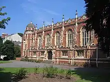 Binswood Hall is a Grade II* listed building[21] in the Tudor revival style, with later additions and alterations including a chapel built in 1867 and gymnasium dating from 1893. Having started as a Girls' Convent School it became Leamington College for Boys, a Boys Grammar School, in 1848. It has now been redeveloped by Audley Retirement as a retirement village of 114 leasehold properties, with a health club and Whittles Restaurant.