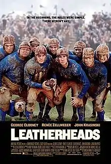Leatherheads is a 2008 American sports comedy film from Universal Pictures directed by and starring George Clooney. The film also stars Renée Zellweger, Jonathan Pryce, and John Krasinski and focuses on the early years of professional American football. The film was released on April 4, 2008. It received mixed reviews from critics and grossed just $41 million against its $58 million budget.
