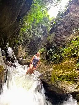 The type locality of the Girón Formation was identified along the Lebrija River in 1954.[8] At this type section, a total thickness of 4,650 metres (15,260 ft) of the formation was registered in 1968.[9] The type locality of the 1 kilometre (0.62 mi) thick La Paz Formation is also located near the river.[10]