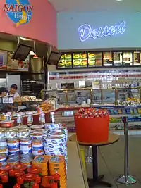 Lee's Sandwiches International, Inc., is a Vietnamese-American fast food restaurant chain headquartered in San Jose, California, with locations in several states and in Taiwan. Lee's Sandwiches specializes in bánh mì, "European-style" baguette sandwiches, Vietnamese iced coffee, and Vietnamese dessert chè.[6] It is credited with popularizing Vietnamese sandwiches and iced coffee among mainstream American consumers and inspiring several other Vietnamese-owned bakery chains.[7][8][9]