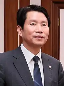 Lee In-young (Korean: 이인영, born 28 June 1964) is a South Korean activist and politician who served as the Minister of Unification from 2020 to 9 May 2022. Prior to this, he was the parliamentary leader of the Democratic Party from 2019 to 2020. He has been the Member of the National Assembly for Guro 1st constituency from 2004 to 2008 and since 2012. Before entering to politics, he was the 1st President of the Association of National University Student Representatives,[1][2][3][4] an anti-establishment student organisation.