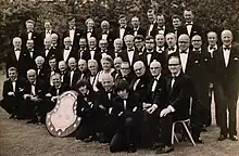 Formed by Thomas Crossland, the organist and choirmaster at Stourton Wesleyan Chapel the choir took its name from Broom Pit in Middleton, Leeds and was known for a time as the Broom Excelsior Male Voice performing for the first time in Stourton in September 1916.[3] John Hickes was the conductor until 1953, overseeing the name change to Leeds Male Voice Choir in the late 1940s.[4]