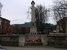 The Leeds Rifles War Memorial is a First World War memorial outside Leeds Minster on Kirkgate in Leeds, West Yorkshire in northern England. The memorial was designed by Sir Edwin Lutyens, one of 15 instances of his War Cross and the only one commissioned by a regiment. The memorial, dedicated to members of the Leeds Rifles who fell in the First World War (with later additions for the Second World War), was unveiled on Remembrance Sunday, 13 November 1921, and is today a grade II listed building.[1]