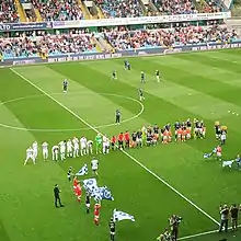 The rivalry between Leeds United and Millwall is a bitter North–South divide rivalry in English football.[4] Millwall were founded in London in 1885 and Leeds United in Yorkshire in 1919, over 170 miles (270 km) apart.[5][6] Both sides entered the Football League in 1920–21 season, albeit in different divisions. From 1920 to 2003 the sides met just 12 times; competing in different tiers for the majority of their histories, and neither considering the other a rival on the pitch. From 2004 to 2020, the teams met 28 times when Leeds were relegated from the Premier League.[1] The rivalry began in League One during the 2007–08 season, with disorder and violent clashes between both sets of fans and the police at Elland Road.[7] It continued into the 2008–09 season; where the teams were vying for promotion to the Championship, culminating in Millwall knocking Leeds out of the League One playoffs at the semi-final stage.[8][9]