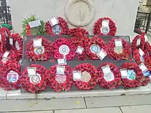 Today the memorial is the centre of Leeds' remembrance day obligations. Adjacent to the memorial are mountings for three flag poles which are brought in for the ceremony.