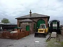 The station building, on the south side of the railway station, is grade II listed with a classic portico entrance, which faces out onto the road over the level crossing which used to be the Great North Road.[11] The station building was renovated in 2021.[12] The former engine shed, which is now used by the heritage railway, is also grade II listed.[1]