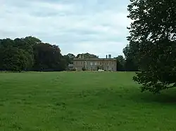 To the west of the hall is a large mound, known as The Mount. By local tradition, this is the motte of a motte-and-bailey castle. There is no archaeological or documentary evidence for this claim, and it is possible that it was created by Switzer as a garden feature. It has two canopied stone chairs, from an original set of four, and a stone table at its summit.[7][15] The park contains many other historic structures, in varying states of preservation. The ice house,[16] stables,[17] dovecote[18] and walled garden all have their own Grade II listings.[19]