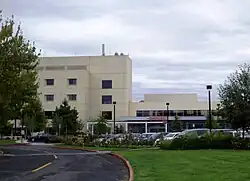 Gresham General Hospital opened in July 1959 in downtown Gresham at a former nursing home that opened in 1934.[1] Gresham General was a private, for-profit facility owned by Ben F. Doerksen and his wife built as a 52-bed facility for a cost of $500,000.[2] Metropolitan Hospitals, parent company for Emanuel Hospital, purchased the hospital in 1971 and renamed it as Gresham Community Hospital,[1][3] and by 1973 it had grown to a 113-bed facility.[4] Earlier in 1971 Emanuel and several other hospitals joined to form Metropolitan Hospitals, which in 1989 became Legacy Health through another merger.[3] In November 1984, Gresham's hospital moved to its current location on Southeast Stark Street in 1984, when it was renamed as Mount Hood Medical Center.[5] The new $15.6 million facility was five stories and had 107 beds.[5]