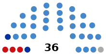 The Duma consists of 36 deputies elected for a term of five years. 24 deputies are elected by single-member constituencies and another 12 deputies are elected in party lists.[5]