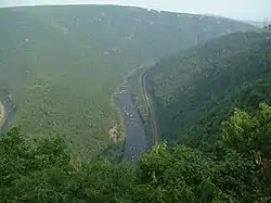 The Lehigh River flows in a highly winding course through valleys between ridges of Pennsylvania's Appalachian Mountains. Its upper course is characterized by numerous whitewater rapids and supports recreational pursuits, including rafting, kayaking, and canoeing. Its lower course forms the heart of the Lehigh Valley, a historically important anthracite coal and steel-producing region of Pennsylvania.