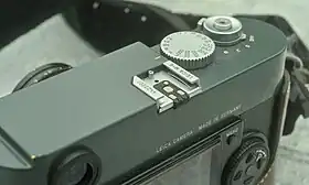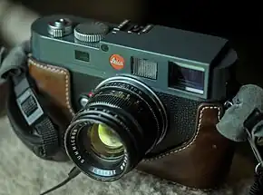The Leica M-E (Typ 220) is a digital rangefinder camera manufactured by Leica Camera.[2][3][4] It was released on 17 September 2012. The M-E is Leica's first entry-level rangefinder model, with a technical specification that is nearly identical to the Leica M9, and based around the same 18MP full frame CCD sensor. It does not offer the M9's built-in USB port, but keeps pace with an identical 2 frames per second continuous shooting mode, hot shoe and Leica's classic rangefinder design. The M-E does not have a frame-lines lever, it preselects the correct frame-line for any lens when it is attached. The M-E, like the M9 and the M Monochrom was made of brass around a magnesium chassis. The M-E is only available with an anthracite grey paint finish.[1][5][6]