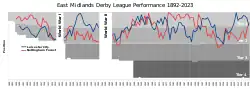 The fixture between Nottingham Forest and Leicester City is a football rivalry played between the two East Midlands clubs, often referred to as an East Midlands derby.[1][2] There have been a total of 108 meetings dating back to 1901.[3]