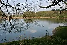 Leigh Reservoir is an artificial lake in the parish of Pitminster, Somerset, 15.1 kilometres (9.4 mi) from the sea.[1] It is to the west of Luxhay Reservoir and south of the village of Lowton, near to Angersleigh.[2] It is 160 metres (520 ft) above sea level.[3] The reservoir is near the southern boundary of the River Tone catchment basin.[4] In 1912 the reservoir had an 8 inches (200 mm) rain gauge 1.5 feet (0.46 m) above ground that recorded rainfall on 180 days of 43.34 inches (1,101 mm) in total.[5]