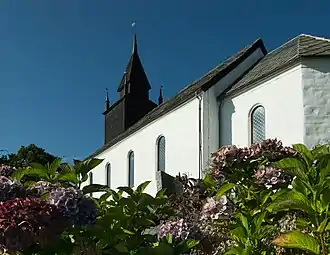 Leikanger Church (Norwegian: Leikanger kyrkje) is a parish church of the Church of Norway in Sogndal Municipality in Vestland county, Norway. It is located in the village of Leikanger, along the northern coast of the Sognefjorden. It is the church for the Leikanger parish which is part of the Sogn prosti (deanery) in the Diocese of Bjørgvin. The white, stone church has a large wooden steeple. The building was constructed in a long church design around the year 1250 using plans drawn up by an unknown architect. The church seats about 220 people.[1][2]