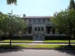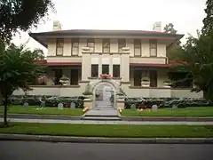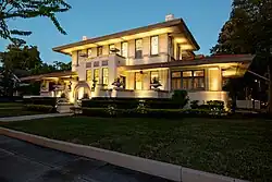 The Leiman House is a historic home in Tampa, Florida. It is located at 716 South Newport Avenue. On September 9, 1974, it was added to the U.S. National Register of Historic Places. A "good example" of a fully developed Prairie style house, the building's architect was M. Leo Elliott. It has two stories, is of brick and block construction with a stucco exterior, and includes a hipped roof with eaves and front walls that enclose a raised patio. The home belonged to Henry Leiman (1857-1931), a manufacturer of cigar boxes.[3]