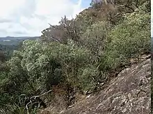 Leionema elatius grows mostly on the ranges north of Bulahdelah and far south-eastern areas of Queensland.[6]