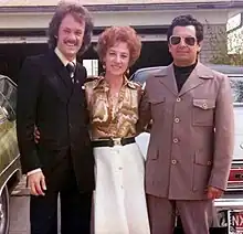 Leisure suits originated on the west coast of the US in the late 1930s as summer casual-wear for the wealthy,[2] possibly derived from the heavy tweed Norfolk jacket or khaki safari jacket worn by English sportsmen.[3] Made from lightweight fabric and originally known as "Hollywood suits" these were worn until the 1950s, especially in the Southwest where, together with suits derived from the Ike jacket, they became popular formal-wear and often featured contrasting yokes, collars and cuffs[4] (see Western fashion). Suits of this pattern, embellished with embroidery and rhinestones, were made by Nudie Cohn[5] for 1950s Country and Western musicians, including Tex Williams and the young Elvis.[6]