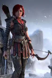 ![]() Promotional art of Leliana with her initial character design from the CGI trailer of Dragon Age: Origins | |