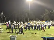 The school's band is made up of a marching band, symphonic band, percussion ensemble and jazz band. The marching band, known as the Marching Mantas, performs a half-time show during school football games and competes against other schools at statewide competitions. The symphonic band consists of only woodwind, brass and percussion instruments, with no string section or string players participating. Both the symphonic and jazz bands are rated on their progress and quality of performance each year by their district Florida Bandmaster's Association.
