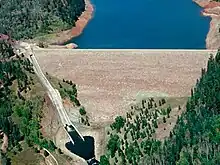 The earthen dam is a project of the United States Bureau of Reclamation and was completed in 1963, at 284 feet (87 m) high and 1,360 feet (410 m) long at its crest.[2] The dam impounds the Florida River for flood control and irrigation water storage, operated by the local Florida Water Conservancy District. 120 kW of hydroelectric power is generated here.