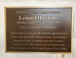 Lemuel Hawkins (October 2, 1895 – August 10, 1934) was an American first baseman in Negro league baseball. He played for the Kansas City Monarchs, Chicago Giants[2] and Chicago American Giants from 1921 to 1928. He was 5'10" and weighed 185 pounds.[3]
