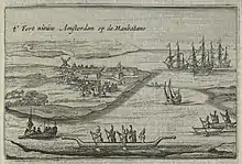 Most examples were vessels intended for inland or harbor waters, of different sizes: mahelo possibly denoted a larger type, and amochol a smaller type.[2][3] Some larger canoes are depicted in early Dutch illustrations with prow and stern extensions, possibly for tying up with hemp dogbane,[2] though these depictions may be inaccurate.[4] Lenape canoes were related to the mishoon dugouts of southern New England. Peter Lindeström recorded a kind of double-hulled catamaran among Lenape at New Sweden capable of travelling to New England or Virginia.[5][6]