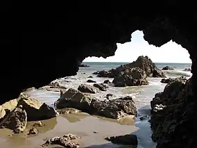 Leo Carrillo State Park is a state park in Los Angeles County, California, United States. Situated along the Malibu coast, the park is a component of Santa Monica Mountains National Recreation Area. With 1.5 miles (2.4 km) of beach, the parkland stretches into the Santa Monica Mountains. The park has expanded into Ventura County and also includes management of County Line Beach.[1] California State Route 1 runs through the park, where it intersects with the western terminus of the Mulholland Highway. The 2,513-acre (1,017 ha) park was established in 1953.[2] It is named for actor and conservationist Leo Carrillo (1880–1961), who served on the State Parks commission.