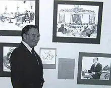 Leo Hershfield (1904–1979) was a prominent American illustrator, cartoonist and courtroom artist for NBC News. NBC referred to him as the "Dean of Courtroom Artists" since he was the first modern artist to sketch trials for TV news in the 1950s and covered 147 trials for NBC until when he died in the late 1970s.