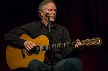Focusing primarily on instrumental composition and playing, Kottke also sings sporadically, in an unconventional yet expressive baritone described by himself as sounding like "geese farts on a muggy day".[1] In concert, Kottke intersperses humorous and often bizarre monologues with vocal and instrumental selections from throughout his career, played solo on six and twelve string guitars.