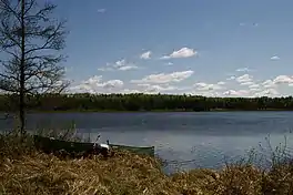 The lakes sits in Churchill River Upland portion of the Midwestern Canadian Shield forests and is surrounded by mixed forest with stands of black spruce, white spruce, jack pine, and trembling aspen. The shoreline is poorly drained areas of muskeg.[1]