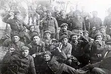 Narwicz's exact service assignement is subject to doubt. Some sources claim he was member of the "Paris Commune Battalion" in the francophone XIV Brigade.[14] Other maintain that he rather formed part of "Mickiewicz Company"[15] in the early XIII Brigade, before it was re-formatted as a Polish-Slavic unit. There are also notes about his membership in Mickiewicz Battalion in the XIII Brigade.[16] Some recollections present him as a political commissar of an unidentified "trotskyist battalion".[17] According to one historian he was not a political commissar, but a commander of the Mickiewicz Company and as such took part in the battle of Brunete in the summer of 1937.[18] At some point he was wounded in the lungs, not clear whether during this battle or during some other engagement.[19]