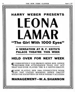 Leona LaMar (October 26, 1883 – April 22, 1941), billed as "The Girl with 1,000 Eyes", was an American stage mentalist and vaudeville headliner in the 1910s and 1920s.[1][2]