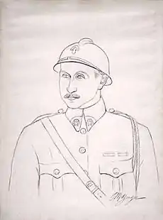 Even while serving in 1916 and 1917 as an auxiliary army volunteer based in Meudon and English interpreter on the Somme front,[5] he continued during his periods of leave to buy paintings by Picasso, Georges Braque, Juan Gris, Auguste Herbin and Fernand Léger.[4][3] He also began to prepare for the end of the war. By the end of 1916 he had managed to sign contracts with Jacques Lipchitz, Henri Laurens, Diego Rivera, Auguste Herbin, Juan Gris, Jean Metzinger and Georges Braque. Fernand Léger followed later, in 1918. Léonce Rosenberg also established commercial relationships with Gino Severini, Henri Hayden and María Blanchard.[9][7]