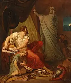 In addition to his paintings, he created several murals, in halls at Marienburg Castle (1860–63) and at Albrechtsburg, where he executed a wall mural showing Augustus, Elector of Saxony, and his wife Anne addressing the people of Meissen (1877).[2] Another mural, depicting the announcement of the Peace of Westphalia, at the town hall in Osnabrück (1880), was destroyed during World War II.[3]