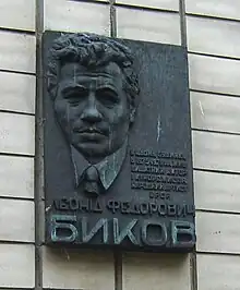 ![]() A plaque on the facade of Hovhannes Tumanyan street, 8, Kyiv, where Bykov lived before his death | |