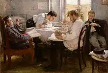 Under a Lamp (Leo Tolstoy in his Family Circle), 1902, pastel on paper