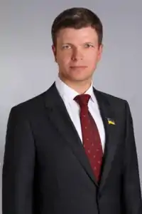 Yemets Leonid Oleksandrovych (Ukrainian: Ємець Леонід Олександрович, 30 August 1979) is a Ukrainian lawyer and politician, People's Deputy of Ukraine of the 7th and 8th convocations. Deputy of the City Council of the IX convocation from the European Solidarity.[1]