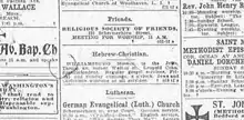 A 1914 newspaper advertisement for Cohn's "regular gospel services," under the church denomination heading of "Hebrew-Christian."
