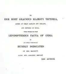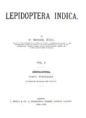 - ↑ Moore, Frederic (1890). "Preface". Lepidoptera Indica. Volume 1. L. Reeve and Co. London.