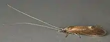 The family Leptoceridae are a family of caddisflies often called "long-horned caddisflies". Leptoceridae is the second largest family of caddisflies with more than 1500 species in around 45 genera.[1] The main identifying feature of most Leptoceridae is that their antennae are longer than those of other caddisflies. There is one genus with short antennae (Ceraclea), but it is easily identified by the pair of dark curved lines on the mesonotum.