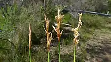 Lepyrodia scariosa is a common species of grass-like plant of the family Restionaceae. It is found mainly in New South Wales in moist sand or peaty soil, growing up to 90 cm tall in heath and woodland and near the edges of swamps. The specific epithet scariosa is derived from Latin, meaning membranous or scar-like, referring to the floral bracts.[1][2] This is one of the many plants first published by Robert Brown with the type known as "(J.) v.v.", which means that Brown saw it living at Port Jackson. It appears in his Prodromus Florae Novae Hollandiae et Insulae Van Diemen in 1810.