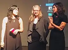 ![]() Left to right: Performance artist Xandra Ibarra, cultural anthropologist Adrian Van Allen, Boroditsky in 2017 | |