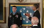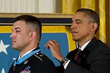 Petry received the Medal of Honor from U.S. President Barack Obama on July 12, 2011, in a ceremony at the White House. He is the second living recipient of the medal, after Army Staff Sergeant Salvatore Giunta, for actions occurring after the Vietnam War. He is the ninth recipient for actions in Iraq or Afghanistan.[14] Giunta was in attendance at the awarding ceremony.[12] Petry later in 2011 attended the Medal of Honor ceremony of U.S. Marine Sergeant Dakota Meyer, the third living recipient of the medal since Vietnam.[15]